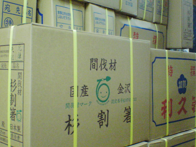 廃材 割箸を作る工程でできる、剥がされた木皮は、煮沸・乾燥の為のボイラーの代替エネルギーとして燃料になり、端材はチップにして製紙会社に送られます。大切な資源を無駄にすることなく、とことん活用しています。 |