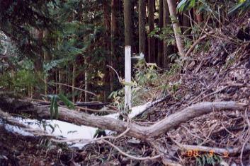 おばさんに尋ねると稲倉神社だという。そして峨山道も教えて貰った。親切にも車の置き場所まで教えてくれたのである。 所々雪の残った林道を,木を伐採するチェンソーの音を遠くに聞 きながら歩き出す。間もなく左手に峨山道の目印があり、「峨山道」と彫られた立派な石板が建てられている。 永光寺と総持寺を結ぶ52kmにも及ぶ峨山道だが、昔のままの 姿を残すところは少ないという。その点「峨山道」の石板で始まるこの峠道は貴重だ。是非歩いてみたいと思っていたのだ。 ![]() 杉の落ち葉が積もった狭いV字型の登り道をゆっくりと歩く。今日は多分上の方は雪があるだろうから,近くても峠で引き返すこ とにしているので散歩という感じだ。 杉の木立の間から木洩れ陽が,道にまだら模様をつくっている。 見上げると良く手入れされた杉林が眩しい。峠道だけあってここ を小走りに通り抜けるのは厳しい。昔の修験者達のその様な姿が 目に浮かぶようだ。いつかテレビかコミックで見た姿しか想像で きないのであるが。 峠の手前は30〜40cmの雪があって、ずぼずぼと足が入り込む。 それも数十メートルの間だけだったが、峠の向こう側はだいぶあるみたいだった。雪の上には動物の足跡が道なりについていた。 稲倉神社から30分,字の消えた白い角柱が立っている峠に着く。 峠の名前が書いてあったのだろうか。書き直しておいて欲しいも のだ。そうしないと峠の名前が何処にもでてこないのだ。 ![]() 気候の良い時にもう一度来て、向こう側へ降りてみたい。今日は 写真を撮って降りることにする。 近年、蛾山道は歩く人もなく荒れるにまかされていたが、この蛾 山道を「歴史の道」として復活させようと、門前公民館が昭和6 1年から調査に取り組み、昭和62年に第一回蛾山道巡行が18 名の参加によって行われたという。 その後、この蛾山道巡行は大きな反響を呼び、今は県内外から多数の参加者を迎え、毎年春秋の2回行われているそうである。 ('00/03/05) |