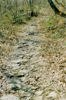 はごつごつしたもので、この道が使われなくなって永い年月が経つので荒れてしまっ
