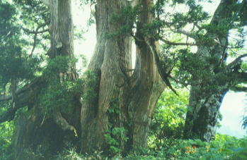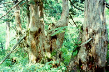 そのうちに雨が降ってきてしまった。尾根伝いには大きな杉などの巨木があったりして、そんな