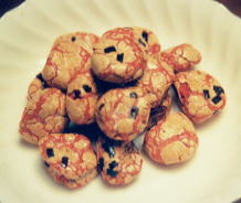 それは、ピーナッツを小麦粉で包んで焼いた豆菓子で、ビー球位の物から,もう
