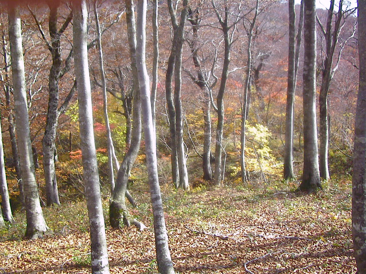 けた。一時間程で最初のピーク「ブナ林」に着く。素敵な場所だ。良く手入れがさ